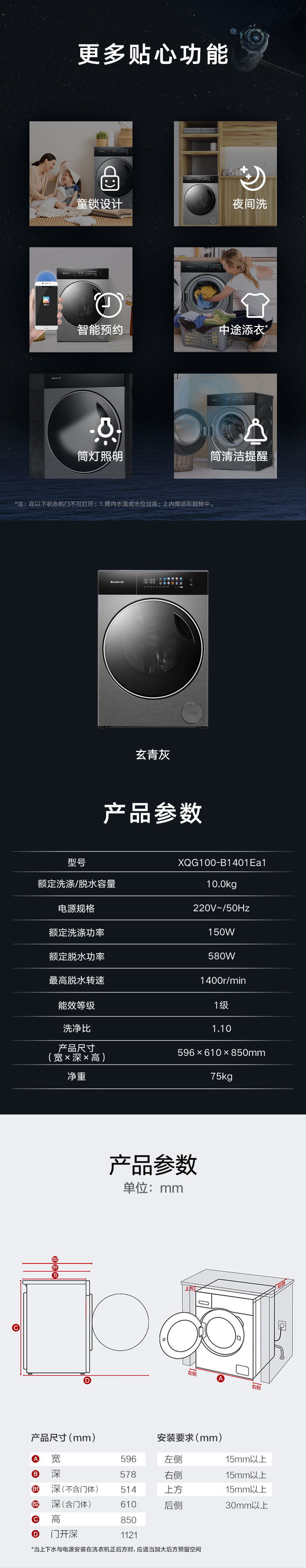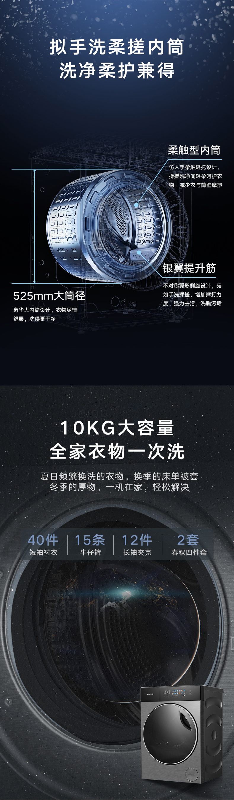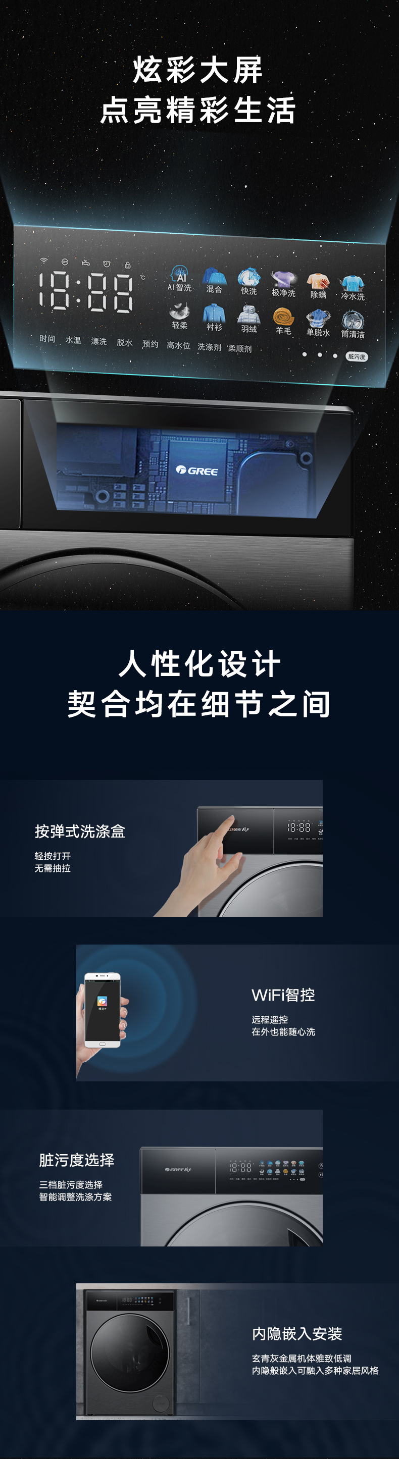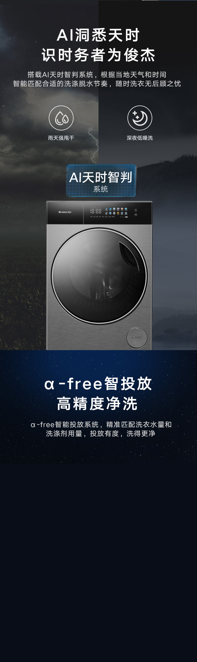 AI智能感應(yīng),臟污一鍵洗凈。AI慧眼識污,智能判斷洗滌凈度,洗凈比高達(dá)1.1