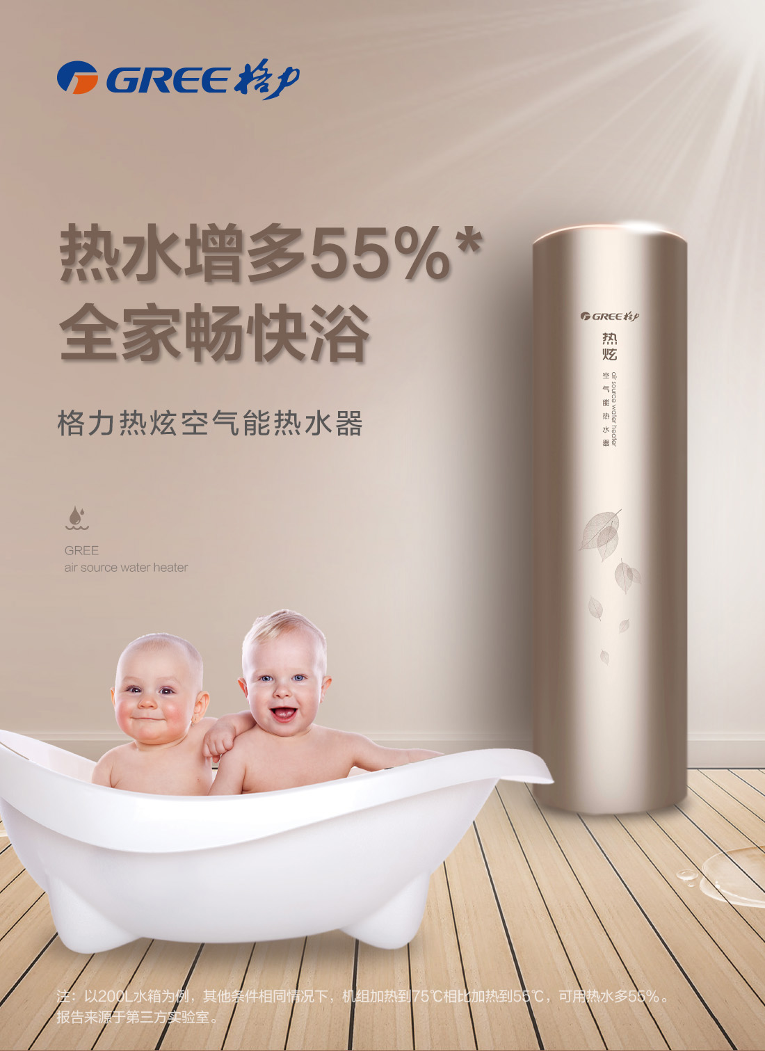 高溫大水量,沐浴暢快享,搭載G-power高水溫系統,成就水溫更高,水量更大的空氣能熱水器,更達1級能效,省電高達75%,全家人暢快享受的沐浴選擇。