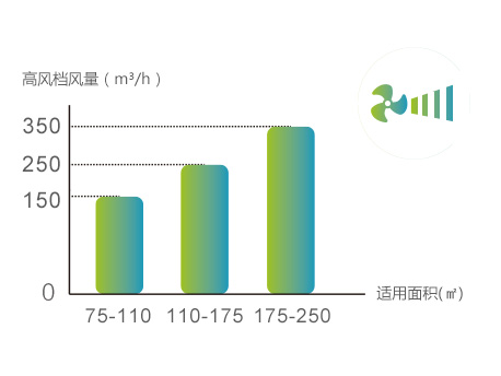 機組設有低、中、高、超強四檔,滿足不同住宅面積和不同接管尺寸下新風需求。