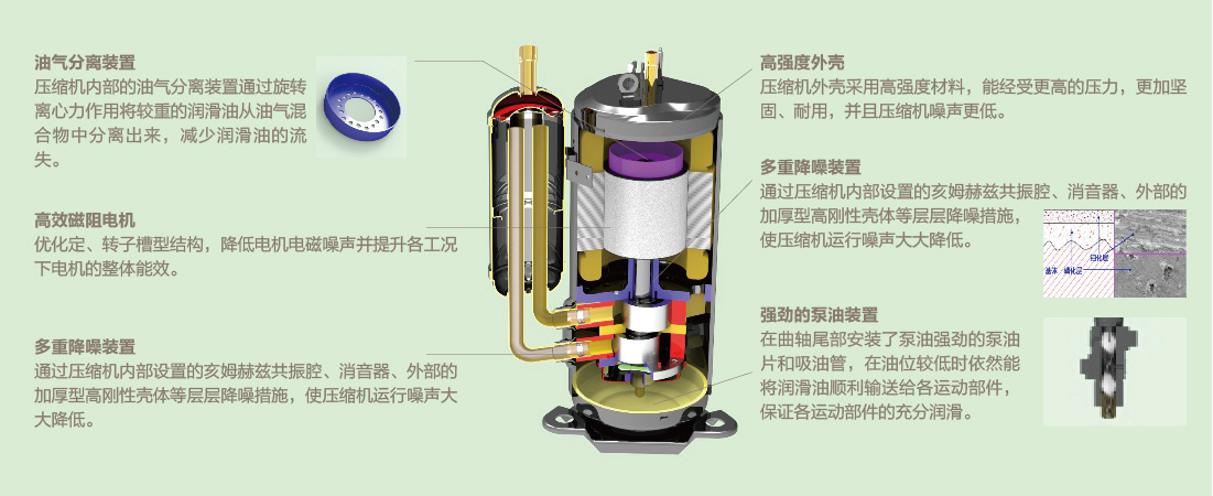 外機、內機均采用直流電機,相對普通電機效率提高30%以上;電機在高溫高濕環境下能持續穩定運行,內電機在-20℃~40℃、外電機在-20℃~60℃范圍內均可持續穩定運行。 |